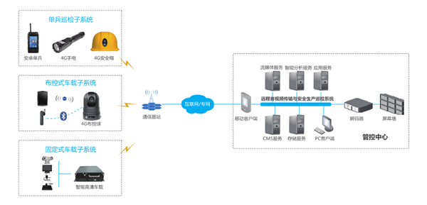 安全巡检子系统提供视频采集和地图定位和导航、巡检路线指引、实时位置上报、拍照上传、接受和处理任务、人脸考勤、安全帽识别、终端之间的即时通讯、终端和平台的通讯。