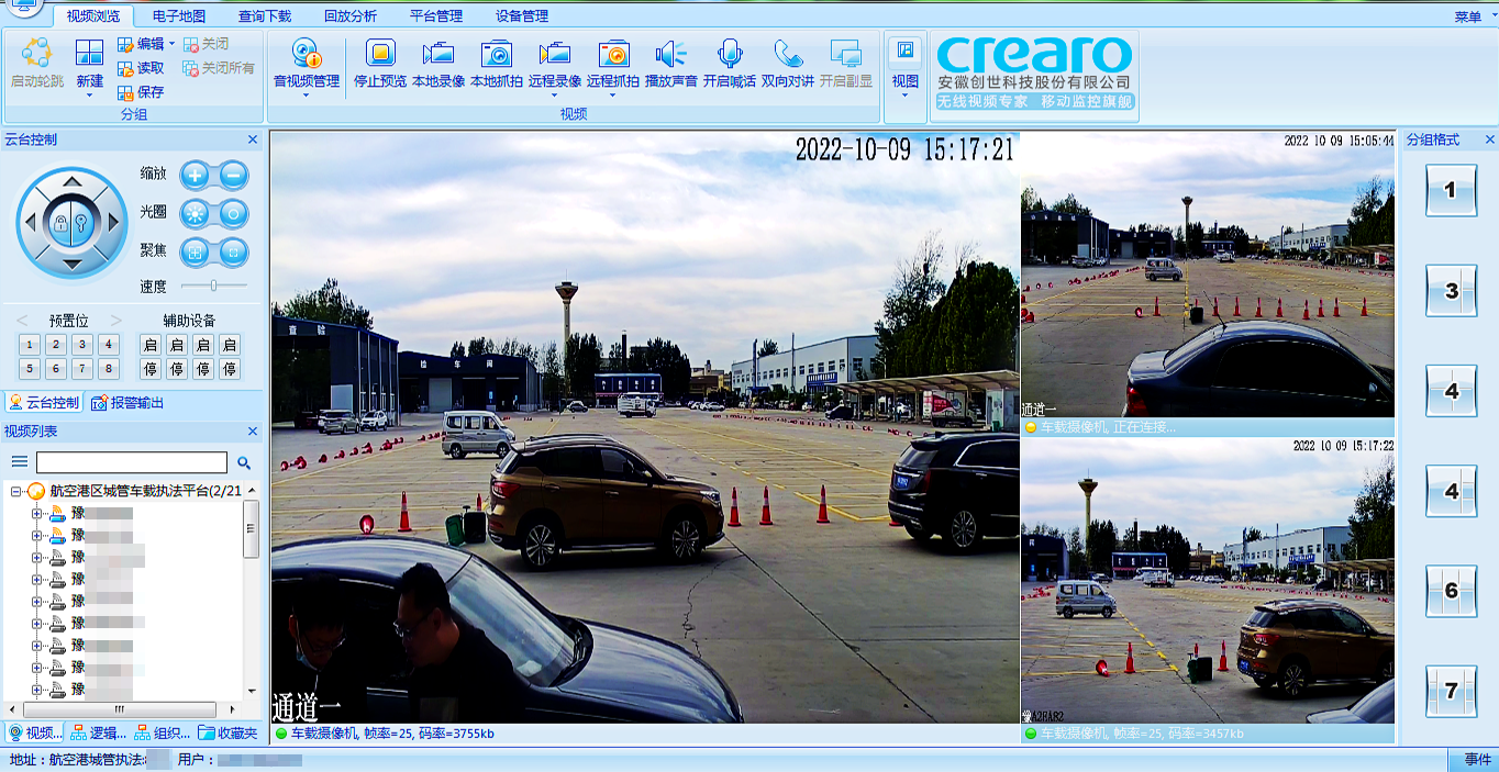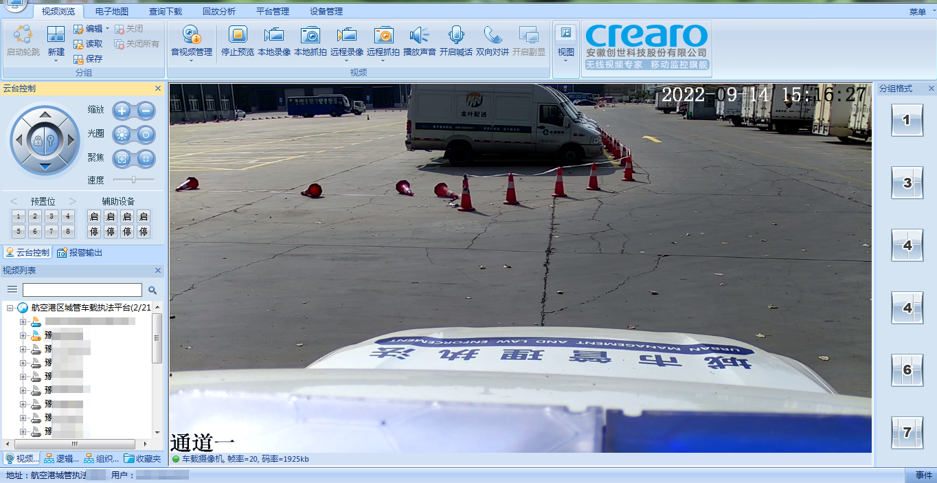航空港区管理局在城管执法车车顶安装摄像头,通过创世科技智能高清车载硬盘录像机和智能物联云平台,利用4G/5G网络,将前端采集到的视频画面实时传输到后台指挥中心,实现执法终端与指挥中心之间的视频通话、语音对讲、进群调度、车辆定位、人员调度等应用。