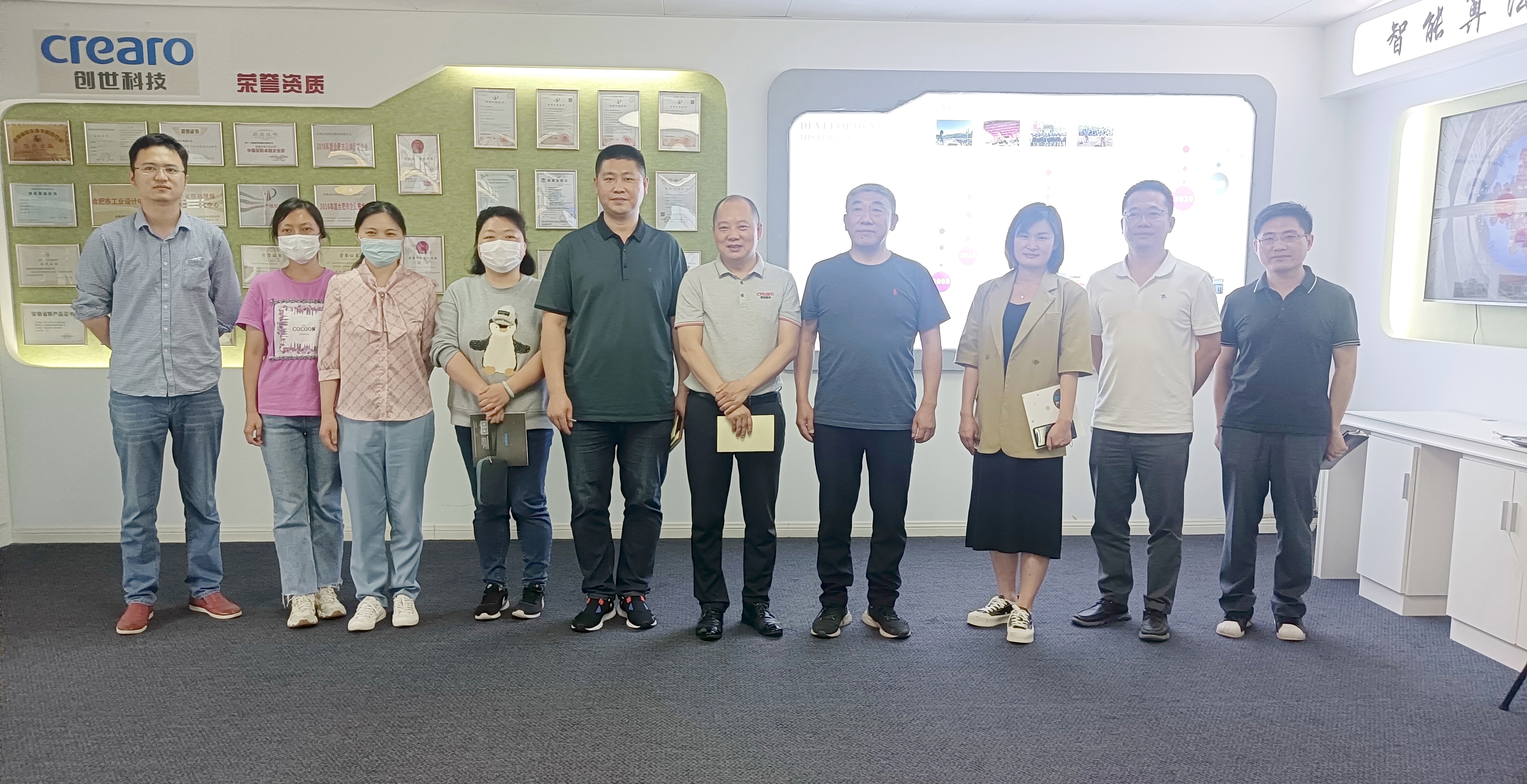 2022年5月18日下午,安徽省无线电监测站站长熊燕、安徽省无线电监测站副站长张国友等人一行莅临安徽创世科技股份有限公司考察交流,旨在深入了解企业发展现状,推动智能无线视频科创型企业的快速发展,天乐中心信息产业基地功能性社区负责人刘安景、主任李晓梅陪同调研,创世科技总经理张传金携相关负责人参加了本次交流会。