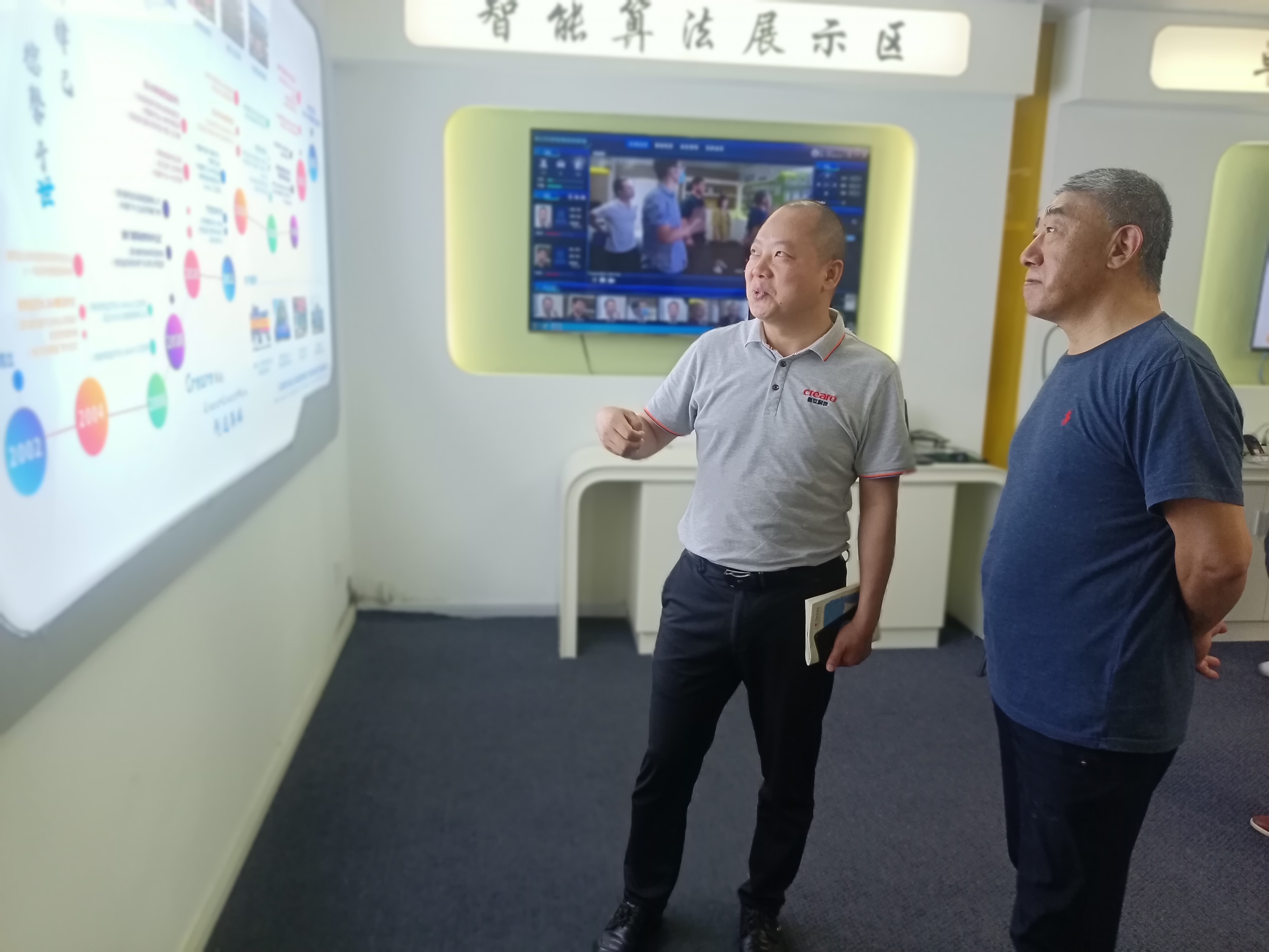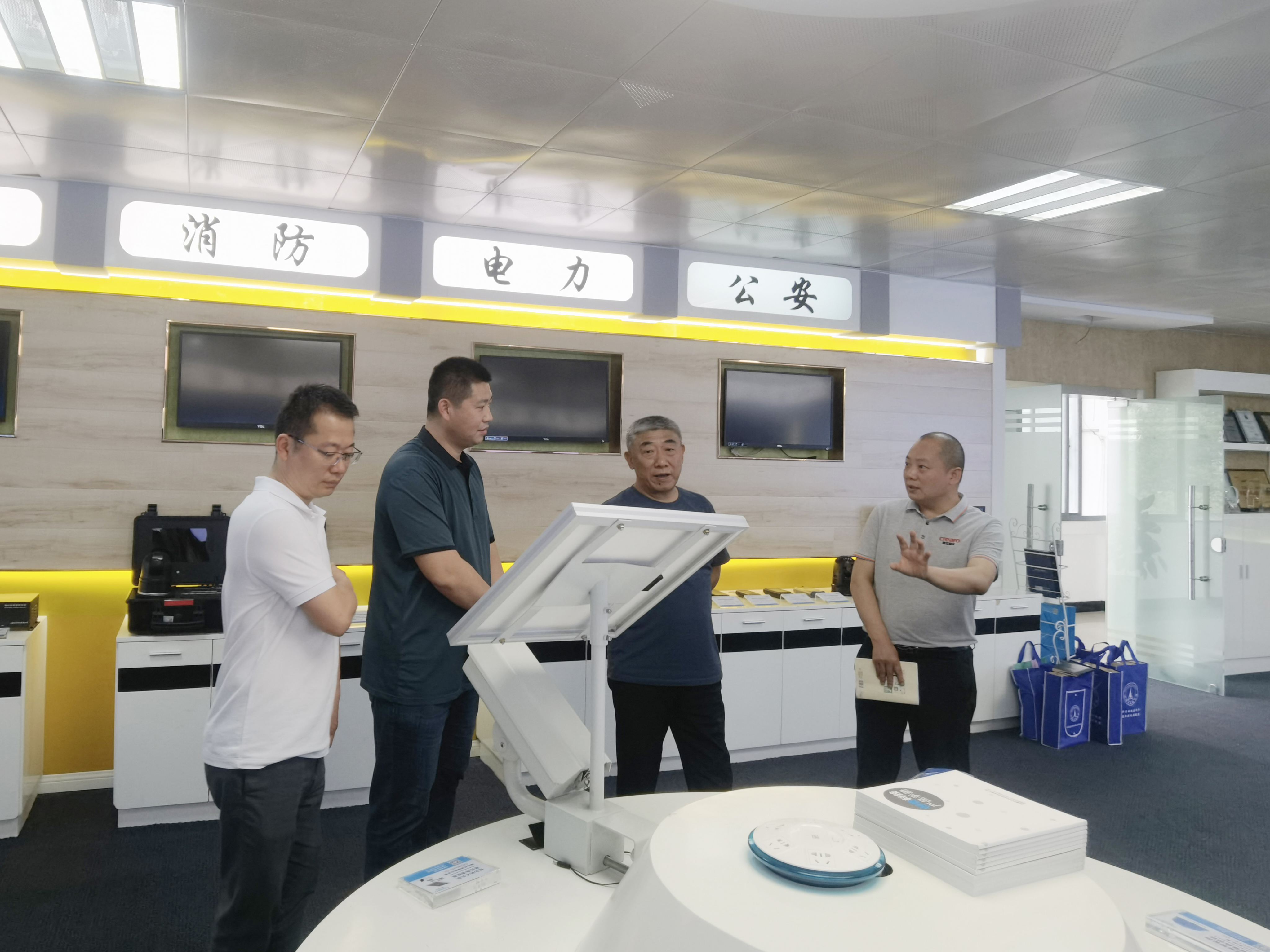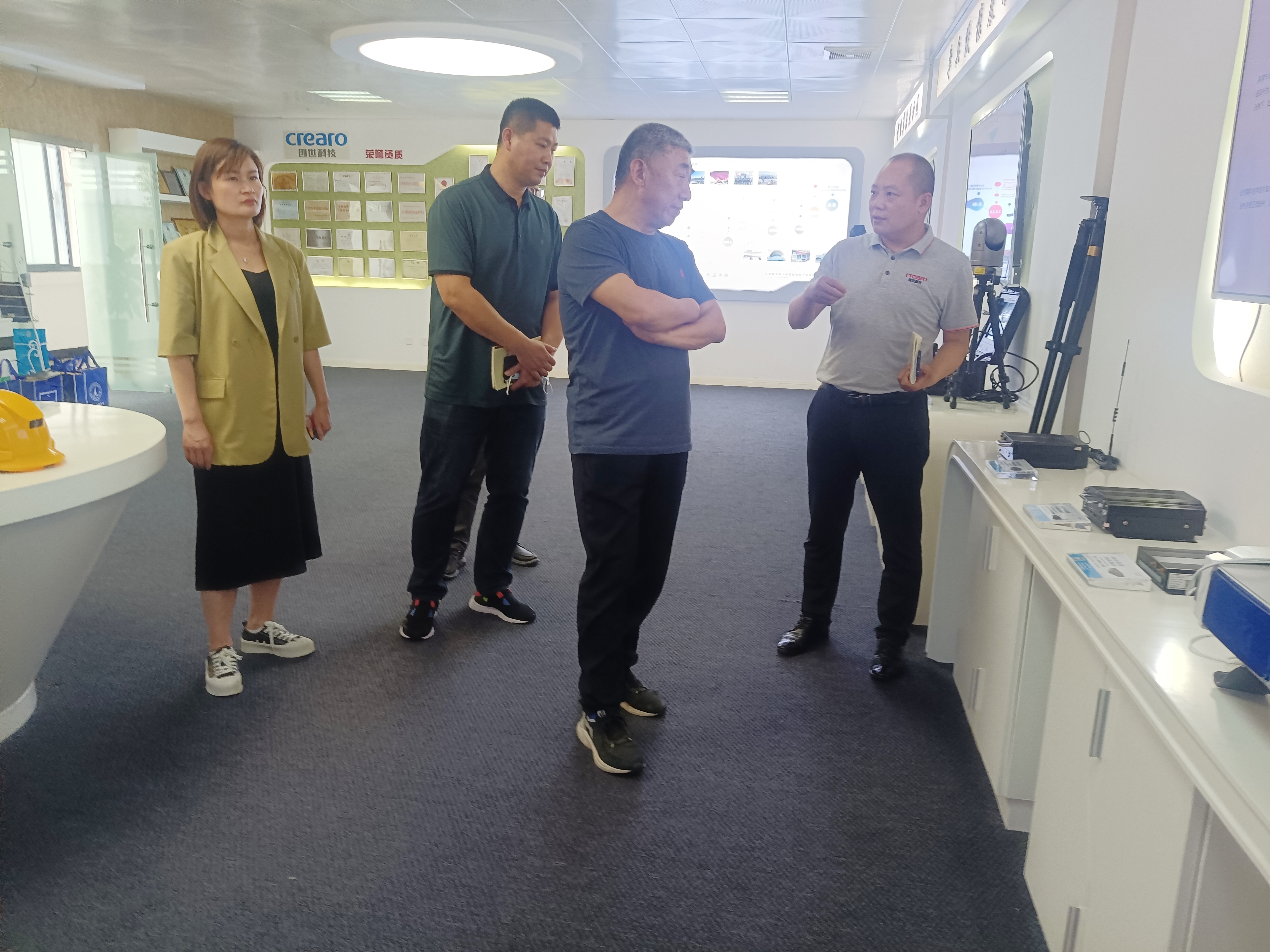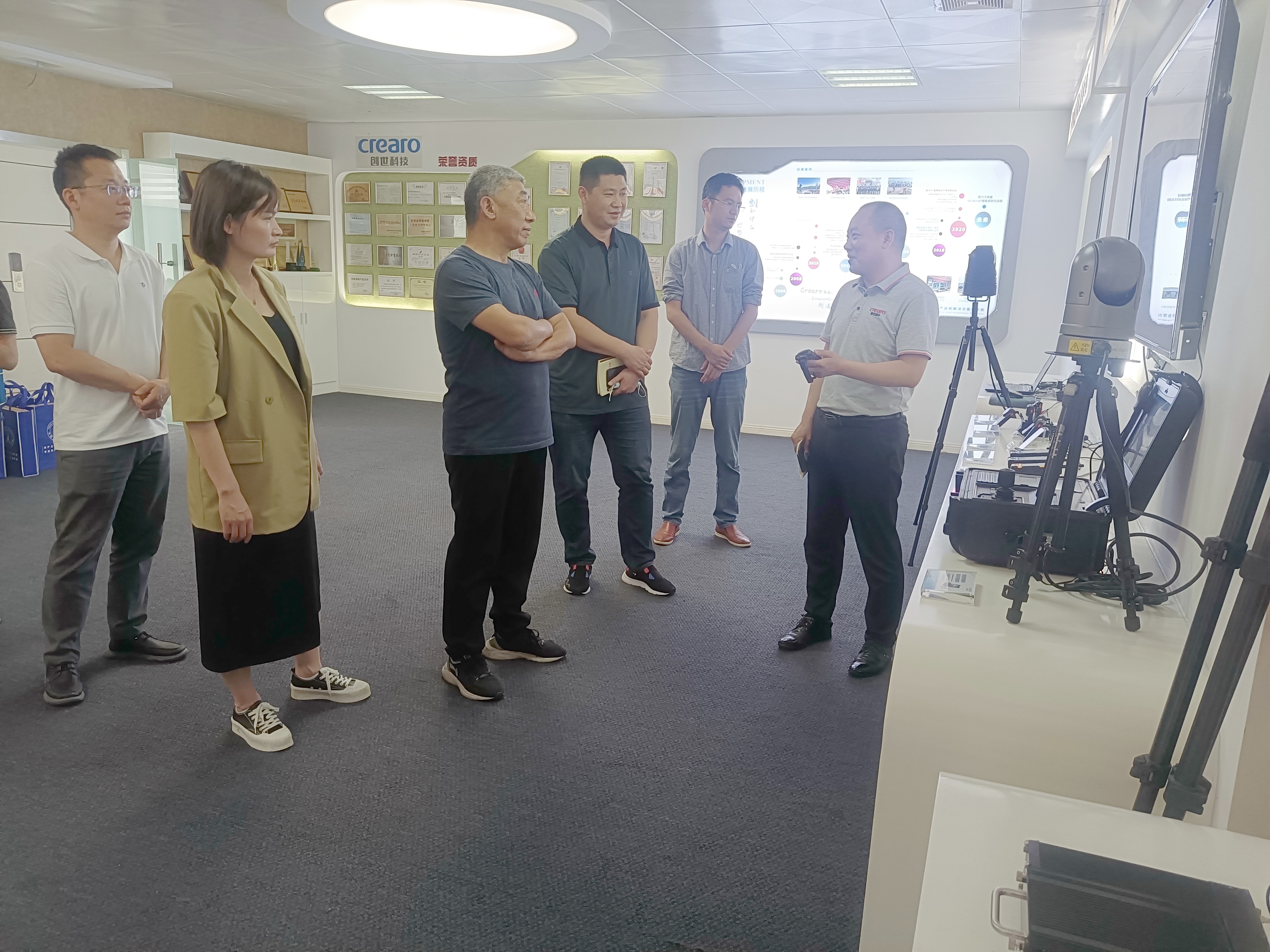 在张总的陪同下,熊站长一行参观了公司的智能展厅,了解了创世科技通过不断加强自主科研实力促进企业成长的发展历程,以及在科技创新方面取得的成绩。在产品展示体验区,熊站长亲自体验了创世科技智能监控产品在安防行业的实战应用,并对创世科技自主研发的5G智能产品、行业解决方案给予高度认可。