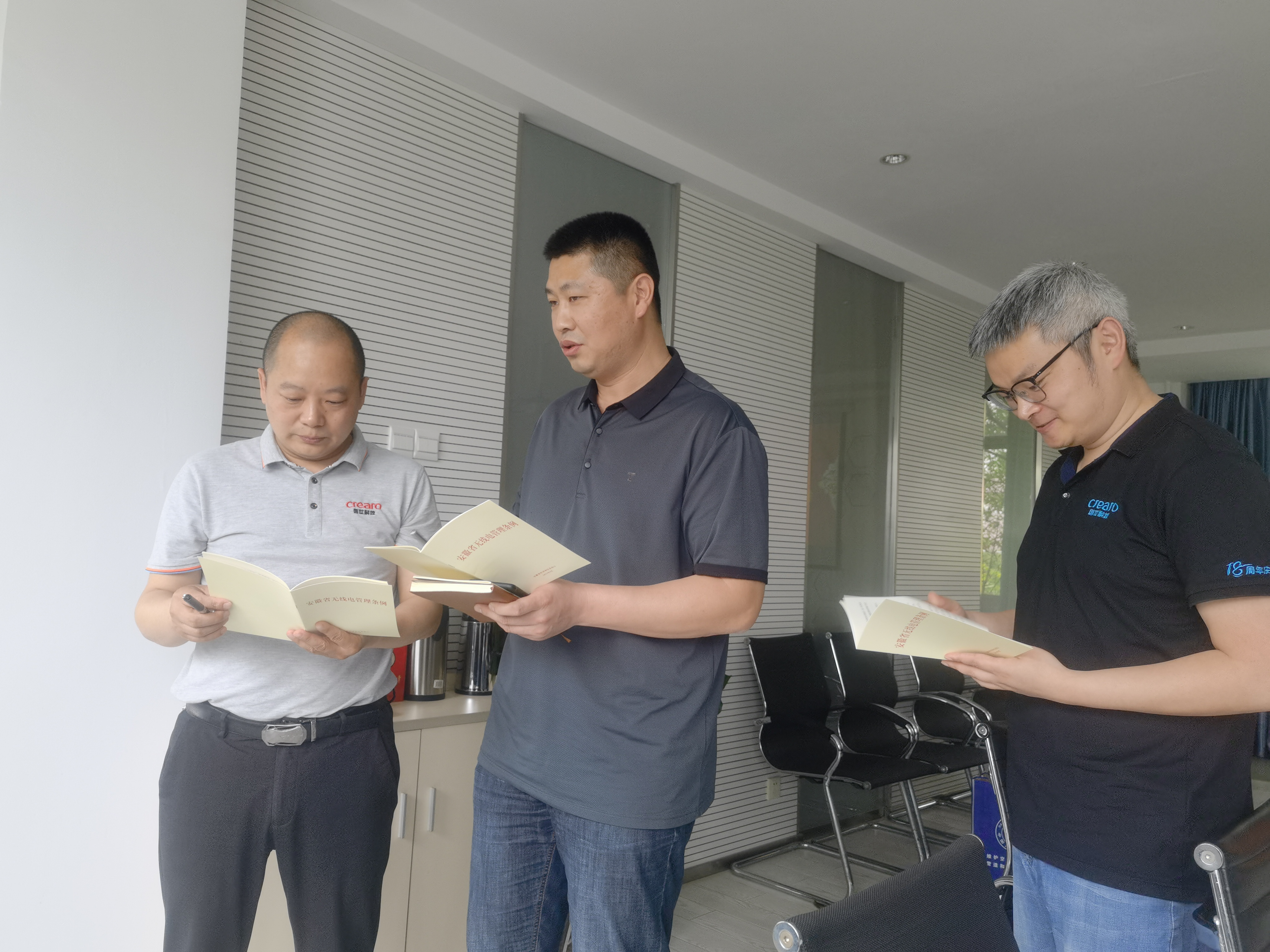 座谈时,张总就行业发展现状、企业战略布局以及当前重点项目建设情况等方面与熊站长展开交流。熊站长高度评价和充分肯定了公司取得的突出成绩,并就企业当下遇到的难点痛点,提出诸多建设性意见,鼓励企业勇于转变思路、抓住机遇、做大做强。同时,熊站长也详细介绍了省无线电监测站的主要工作内容和我省无线电未来的发展规划,希望和创世在无线电技术领域加强交流合作,共同探索5G技术在我省无线电监测方面的应用。会后,双方共同学习了*新的安徽省无线电管理条例。