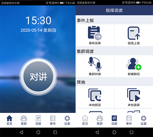 公网集群:兼容多种网络制式数字终端设备,数字群呼融合视频调度、电子围栏、事件上报,实现安保系统完全数字化和网络化。