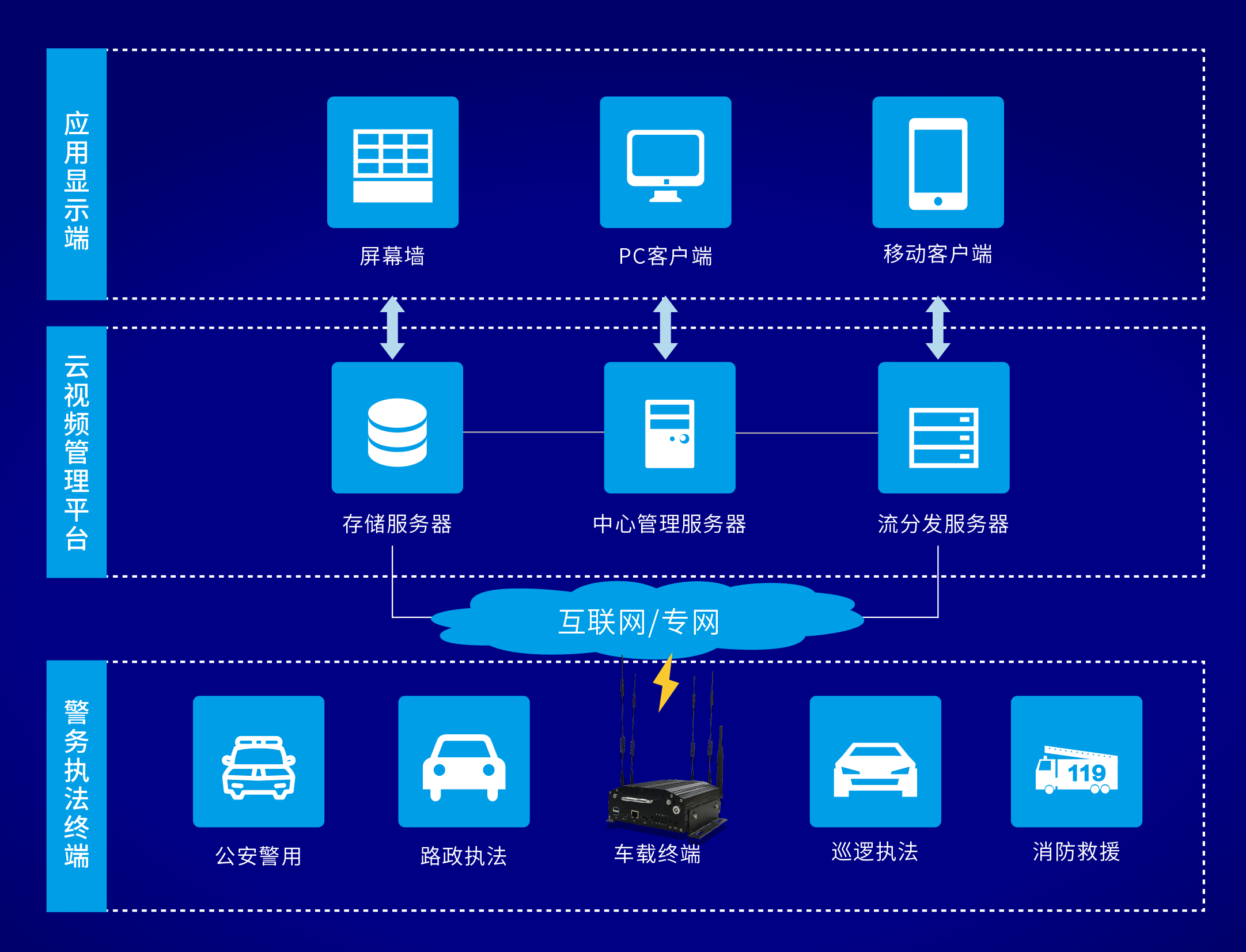 智能高清车载终端是警用应急通信指挥系统的一个重要组成部分,对重点区域进行高度密集部署,具有远程双向音频互通,移动前端群组交互,同步指挥调度,高清视频传输存储等功能。