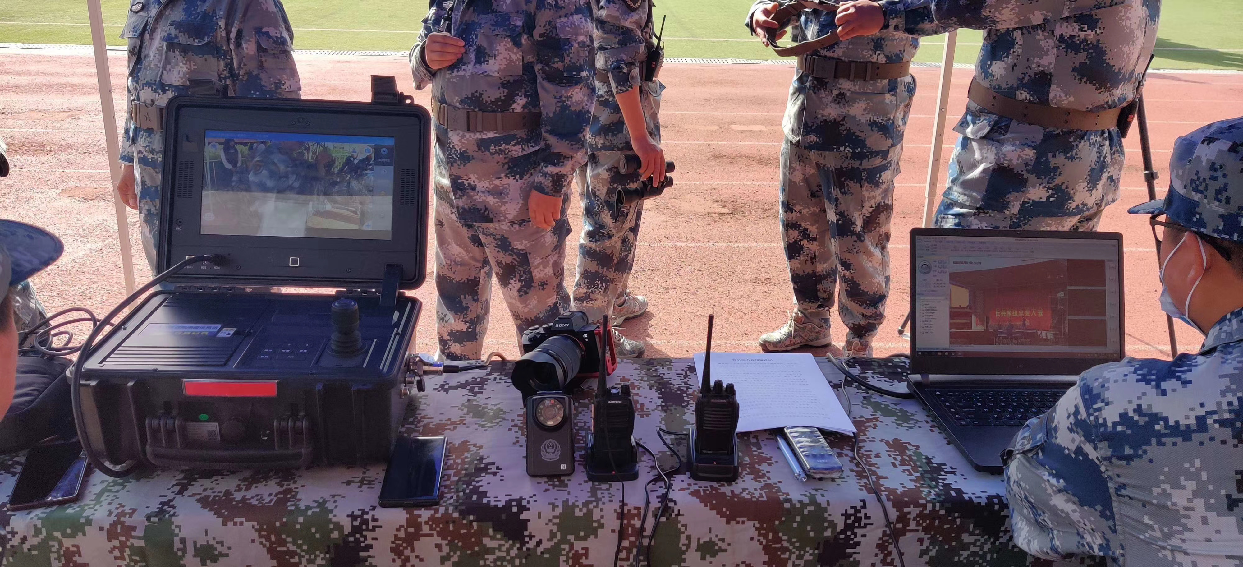在民兵整组点验大会现场,利用创世无线应急指挥产品,快速组建民兵训练的应急指挥调度网络,为野外综合救援等科目建立起一套可视化的移动视频监控作战系统。