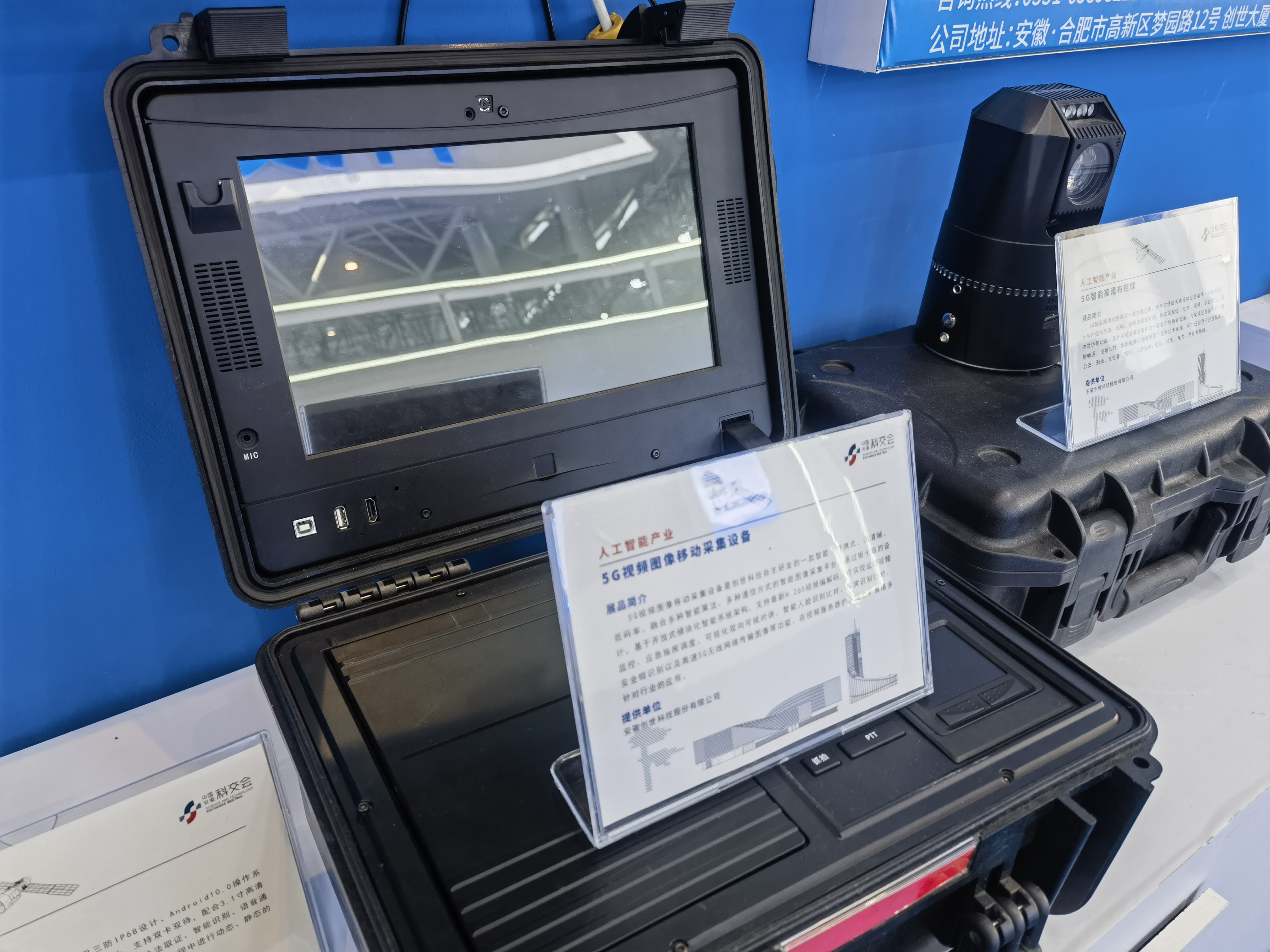 此次科交会展示的5G视频图像移动采集设备融合多种智能算法和多种通信方式,在不具备有线网络环境,需灵活移动和快速组网等场景下,可作为核心设备建立临时指挥所,实现现场指挥及办公、远程指挥调度、视频会议、专网接入、公网接入等功能,为应急指挥和信息上报提供有力保障。