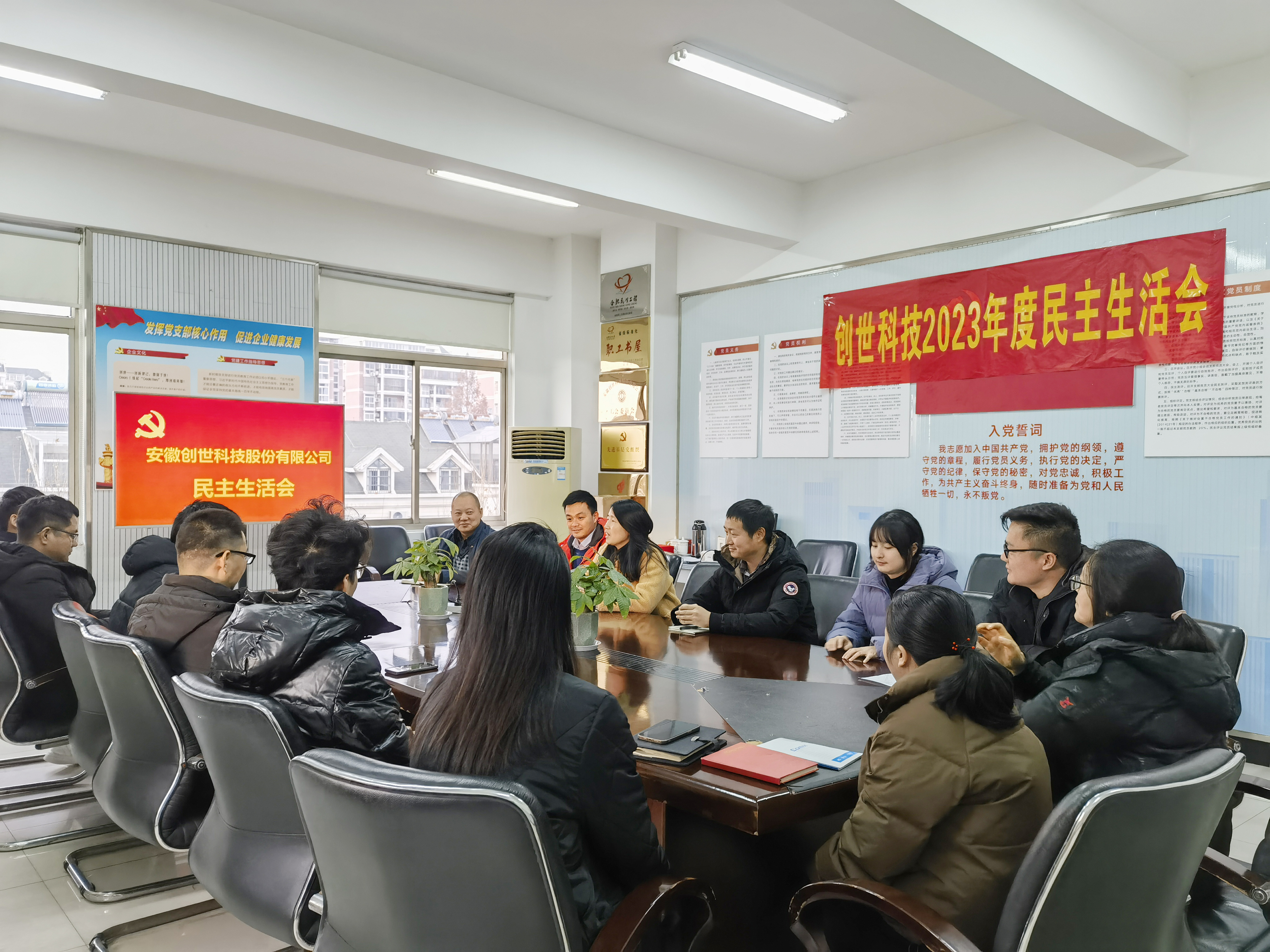为了深入学习贯彻习近平新时代中国特色社会主义思想,加强党性教育,激励党员勇往直前、忠诚担当,12月26日,安徽创世科技股份有限公司党支部在党员活动室召开了2023年度组织生活会暨学习强国积分奖励兑换活动。