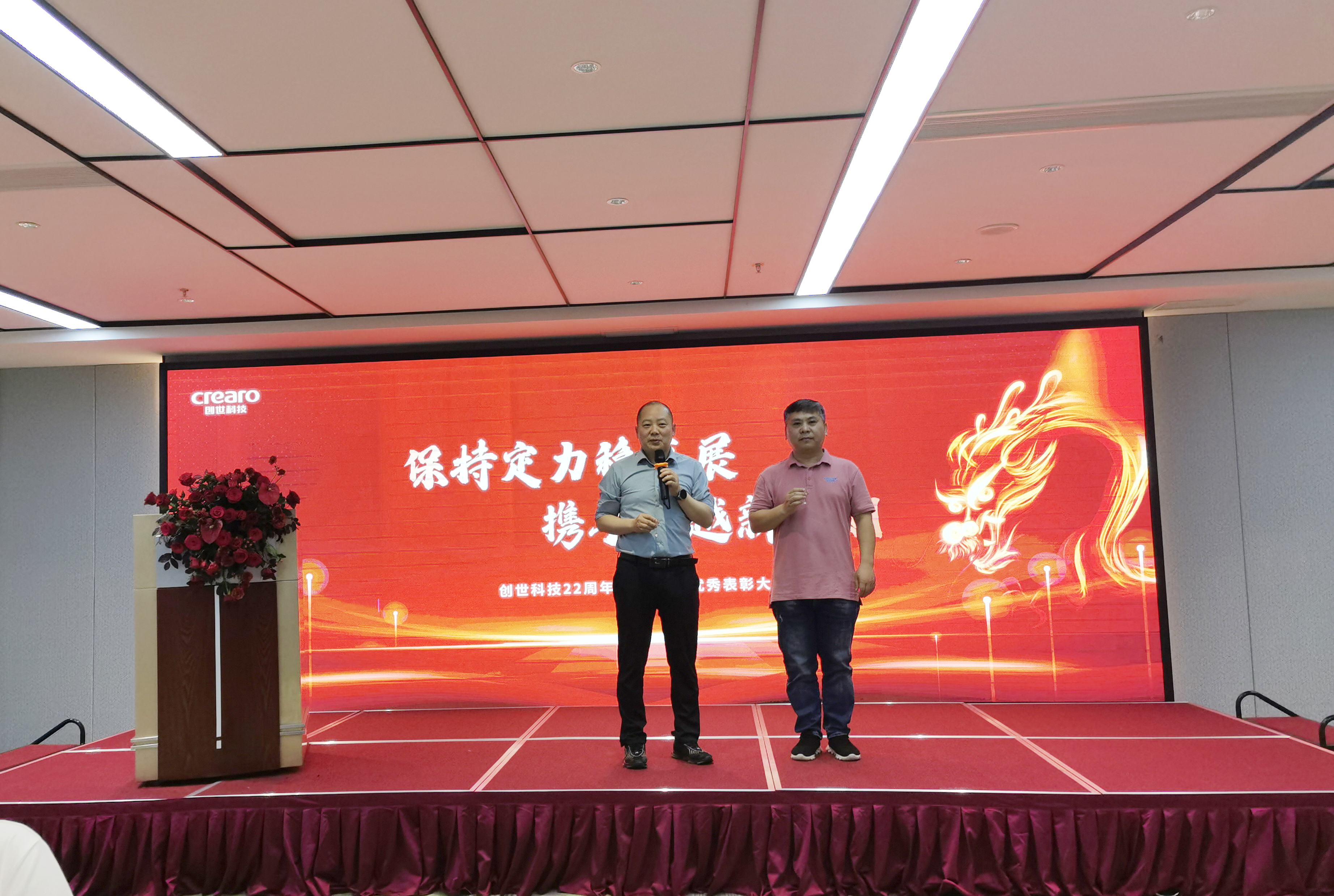 夜幕降临,晚宴正式拉开帷幕。创世科技副总经理刘治国为大家致祝酒词:今天是我们共同走过21周年的终点,是我们畅想22周年的起点。感谢每一位创世人,是你们的努力和敬业,成就了公司今天的辉煌成绩。请各位举起手中的酒杯,让我们携手并肩,何惧前路漫漫!一路有你,温暖有爱,团结互助,我们共同激情跨越新周期,一路有你,鲜花掌声,骄傲自豪,我们共赢未来。