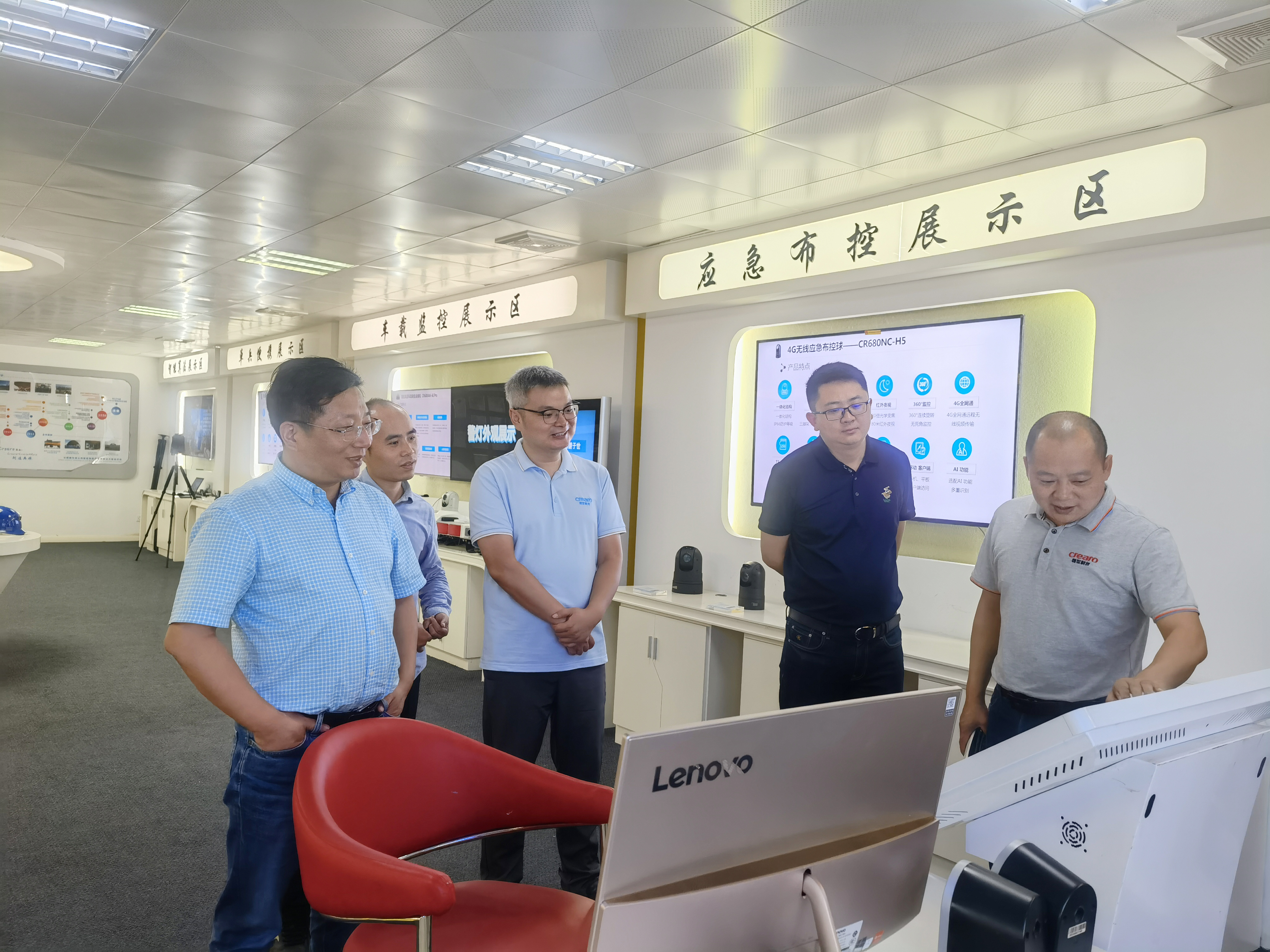 杨院长一行参观了公司的智能展厅,先后听取了创世在平安城市建设与无线视频监控领域创新方面的工作;并深入体验了在人工智能领域的创新产品与科研成果,如智能执法记录仪、应急移动便携平台、智能安全帽、智能车载、一体化警灯和智能布控球等软硬件产品,杨院长一行近距离感受到AI视觉技术赋能智慧城市建设的先进性与优越性,对公司的行业地位和整体实力表示肯定。