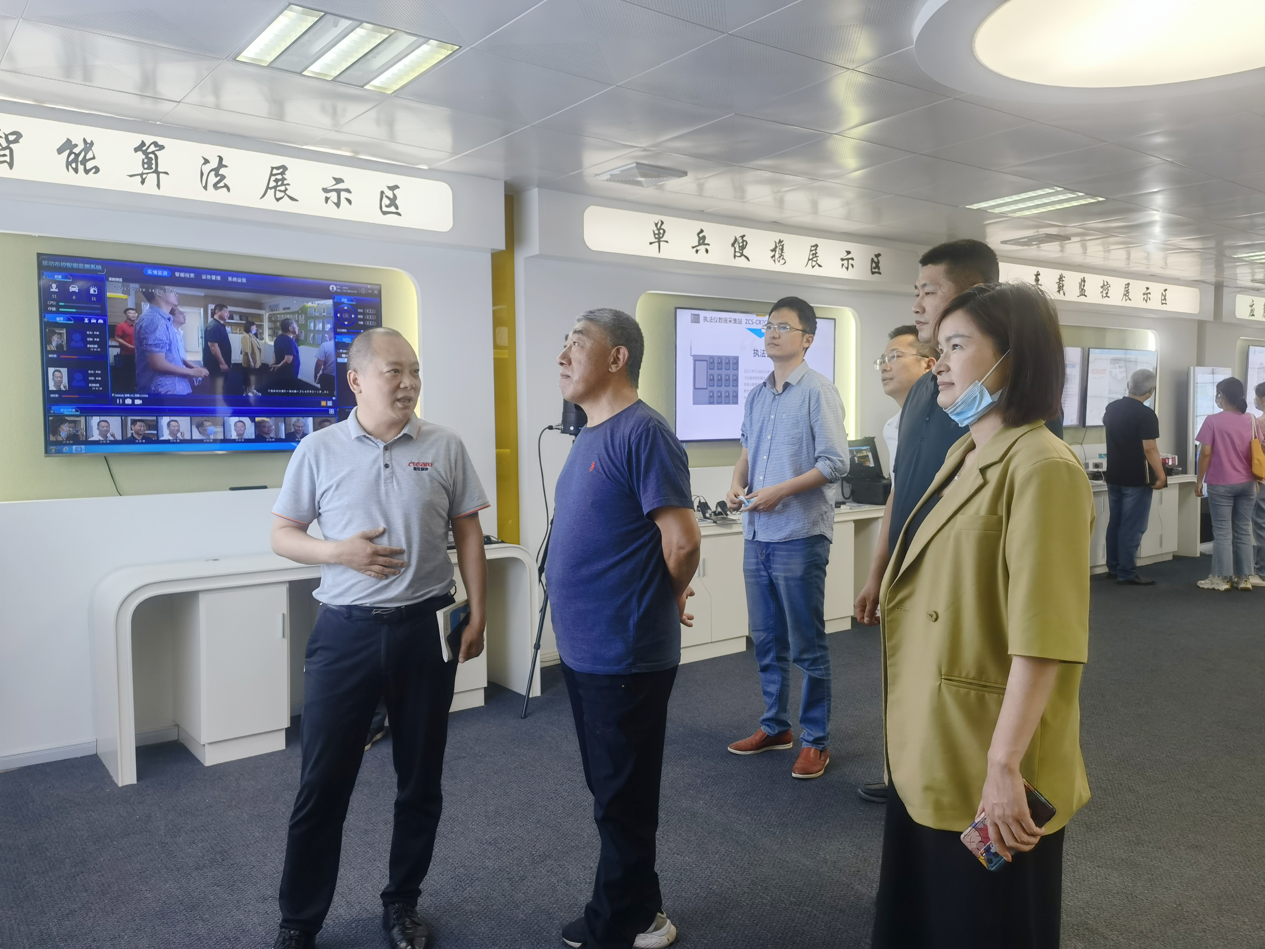 在张总的陪同下,熊站长一行参观了公司的智能展厅,了解了创世科技通过不断加强自主科研实力促进企业成长的发展历程,以及在科技创新方面取得的成绩。在产品展示体验区,熊站长亲自体验了创世科技智能监控产品在安防行业的实战应用,并对创世科技自主研发的5G智能产品、行业解决方案给予高度认可。