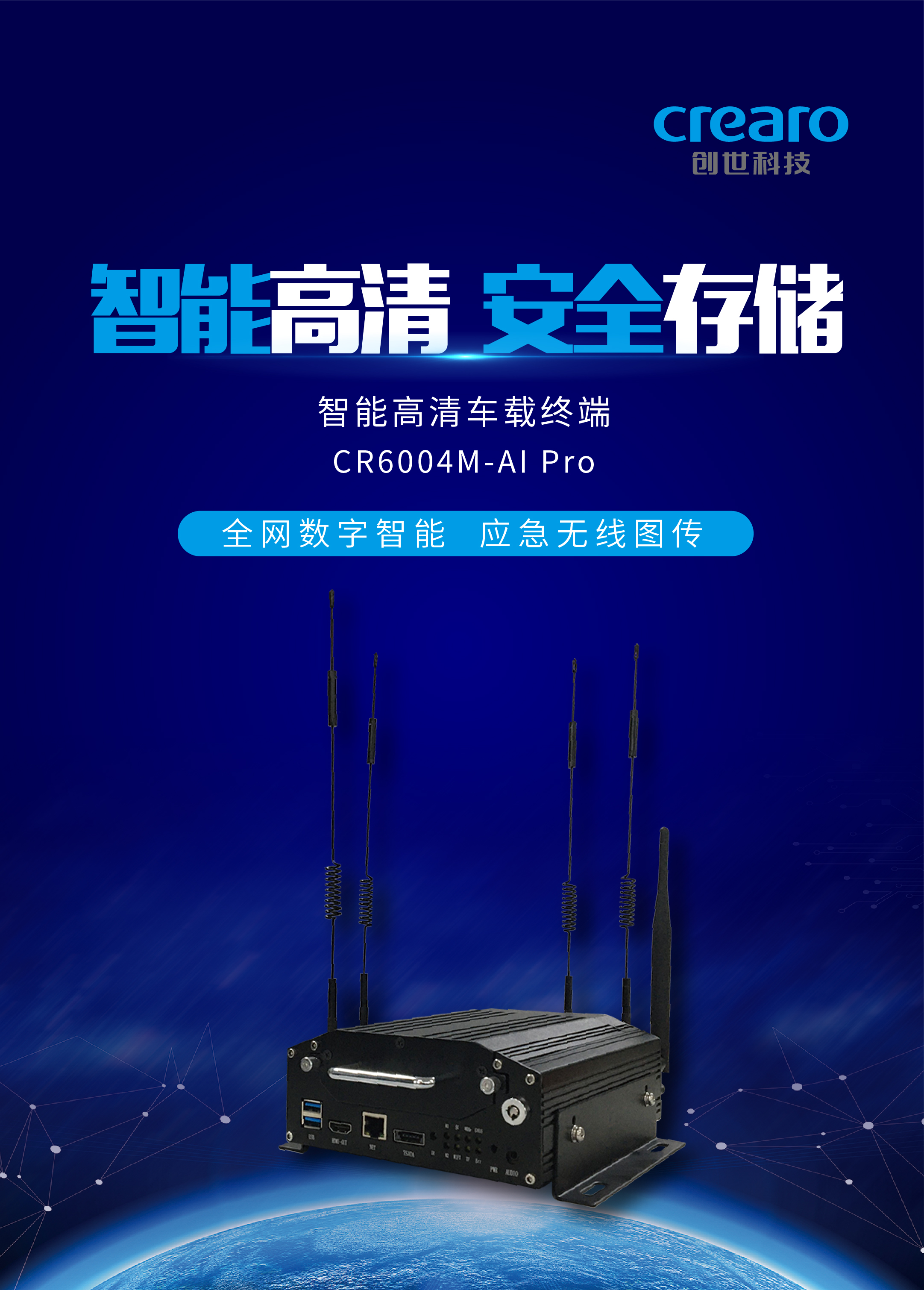随着我国大力推进“新基建”项目,5G建设和应用进度整体加快,同时 5G、AI和4K彼此赋能,完美契合实现了更多的可能,创世科技在此背景下加大研发力度,针对应急指挥、警用执法、路政巡逻等应用领域正式推出智能高清车载终端CR6004M-AI Pro。