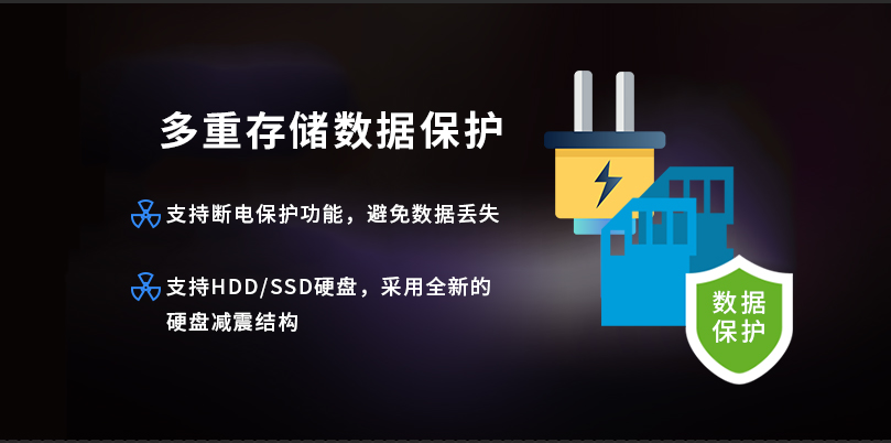 支持断电保护功能,在突然断电情况下,实现正常关机,避免数据丢失;并且支持1块2.5英寸HDD/SSD硬盘,*大容量2TB,采用全新的硬盘减震结构。