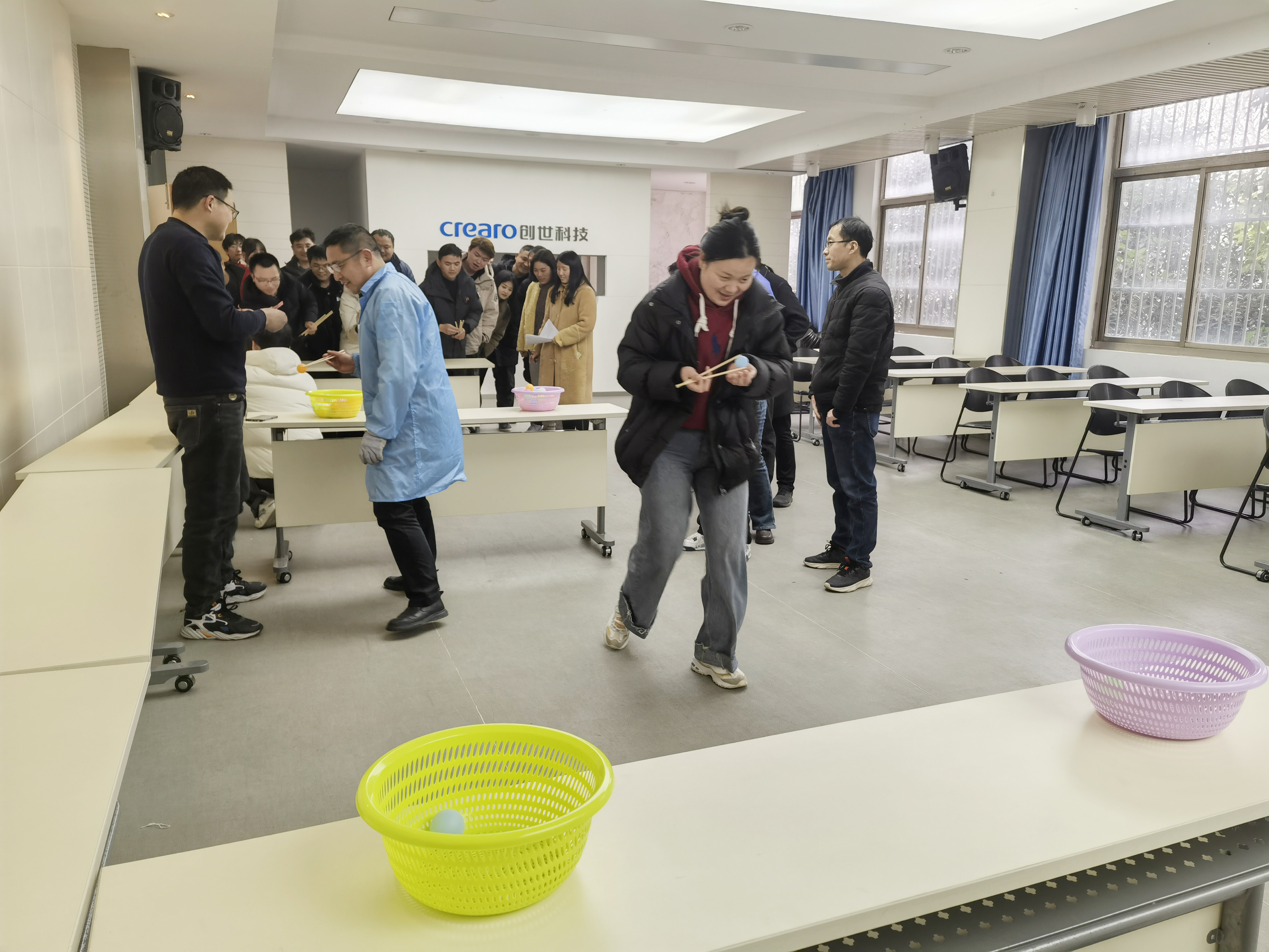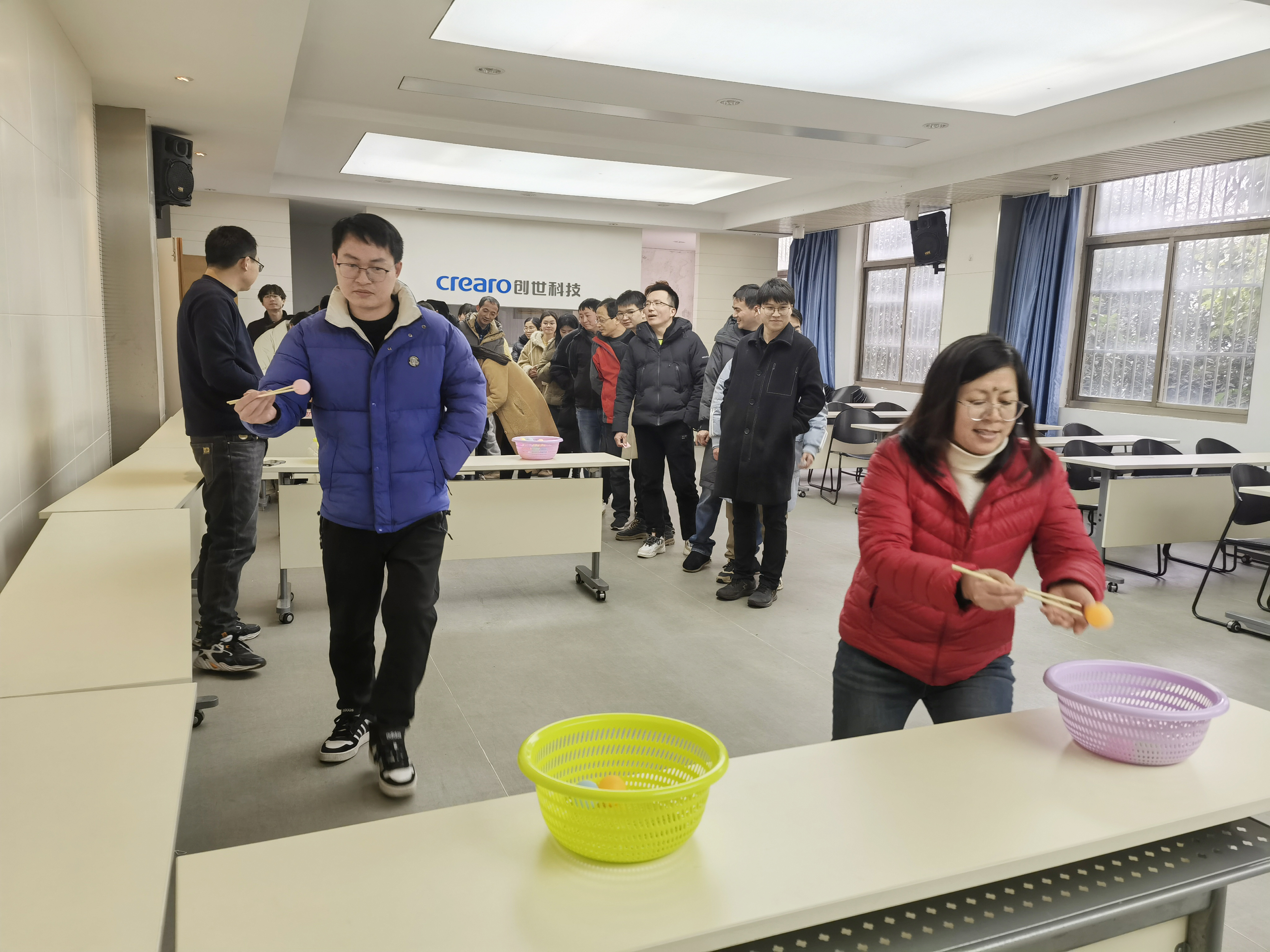 为了增加活动的趣味性,公司还组织了“夹元宵”游戏,参赛者需要在限定时间内,用筷子夹起尽可能多的元宵放入碗中,比赛既考验了大家的技巧,也考验了耐心和速度,现场笑声不断,掌声连连。