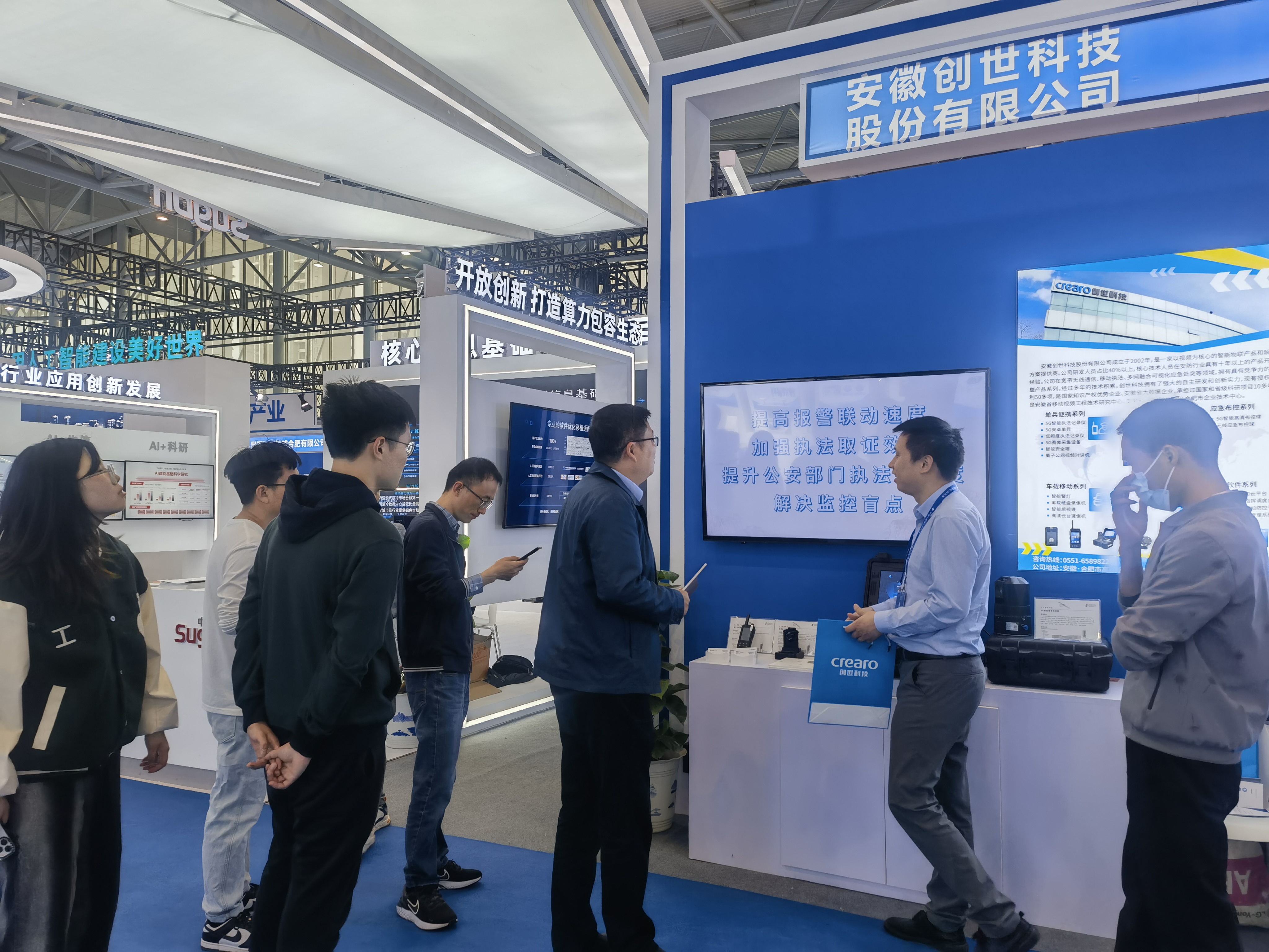 创世科技在安防行业智慧解决方案与相关服务方面有着丰富的经验和独特的优势。此次展会,创世科技集中展示了5G智能执法记录仪、5G智能高清布控球等*新的5G智能化产品,引起广泛关注,众多参会者上前咨询展品相关信息,和技术人员互动交流,现场气氛热烈。